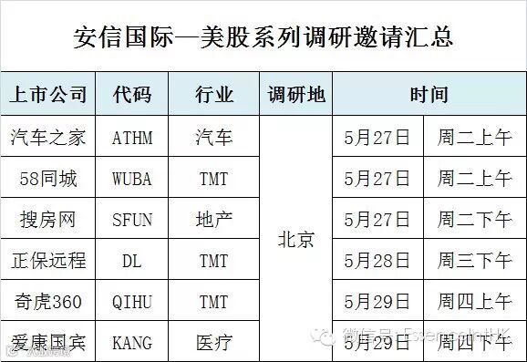 安信国际近期组织多家美股上市公司调研,具体安排如下: