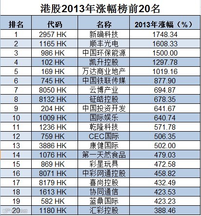 2013年恒生指数全年涨2.87%,2013年国企指数全年跌5.42%。
