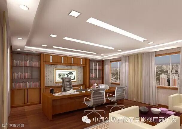 采用多种可调光源,可根据需要,通过系统预设照明回路的不同亮暗搭配,产生各种灯光视觉效果,使得总经理室始终保持最柔和优雅的灯光环境(如办公、会客、休闲等多种灯光场景),操作时只需按动某一个场景按键即可调用所需的灯光场景。