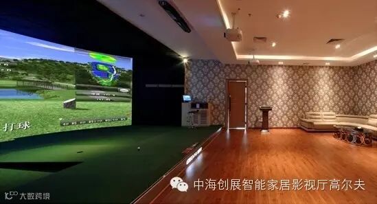 同时,室内高尔夫的发展,将这项运动真实的模拟到了室内,模拟到了办公室中、大型会所中、私人别墅中。尤其是私人别墅,随着生活品质的提高,越来越多的人把自己的别墅变成了自己城堡,他们的城堡中有棋牌室,有家庭影院,有游泳池等。现在在别墅中也能真实的打高尔夫了。室内高尔夫通过检测器、投影仪和幕布,把室外的高尔夫击球感受模拟到室内,用真实的球杆和球,击球者将球击出,打到幕布上然后落在地上。击球的瞬间,检测器精确的检测出球的飞行高度、角度、速度,然后通过电脑快速计算,再投影仪把软件模拟的真实球场和球的飞行轨迹模拟出来。让打球者,感受接近于室外的高尔夫乐趣。