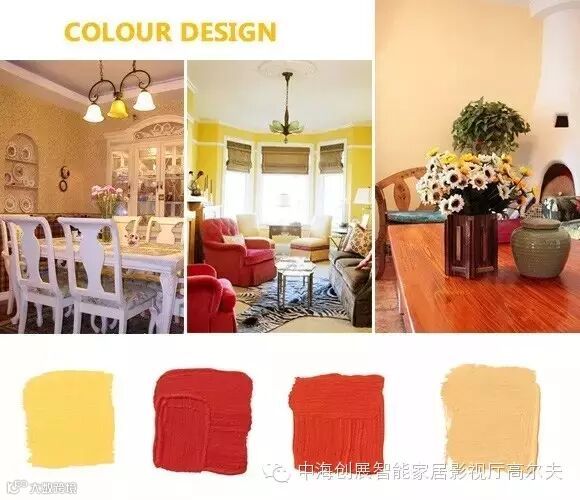 柔和的黄色家居设计,给人带来轻柔的感觉,在家居装修中再搭配红色的家具或饰品,可以增强活力,给人以激励,红色与黄色间的呼应可形成视觉上的律动。