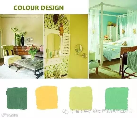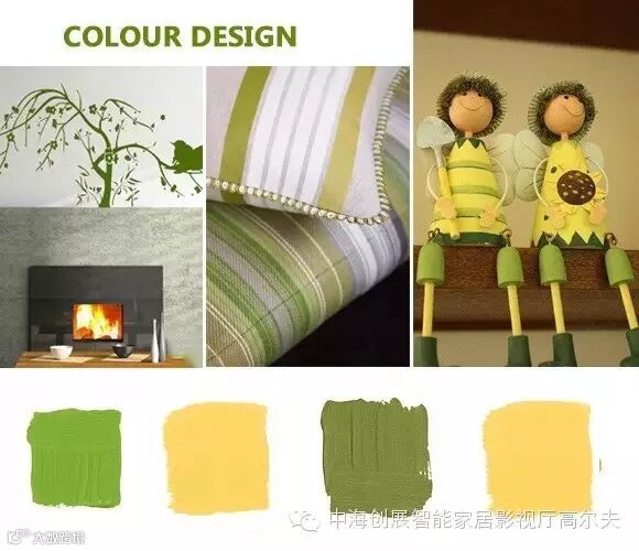 以柔和的浅黄色去搭配明亮的绿色的家具或装饰品,给空间增添柔软的感觉,而鲜明的用色相互进行衬托,令家显得生机勃勃。