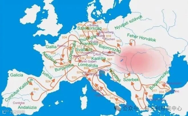 “匈牙利”这个名字,是误传的结果。在今天,全世界其他所有国家的人都将匈牙利称为“匈牙利”、将匈牙利人称为“匈牙利人”,只有匈牙利人将自己的国家称为“马扎尔国”(Magyarország),将自己称为“马扎尔人”(Magyar)。那么全世界人民为什么都将这个马扎尔国叫作“匈牙利”呢?原来,马扎尔国最早建立时,是从七个马扎尔部落拉来三个突厥部落小伙伴——三个可萨人部落,组成一个部落联盟。它们都是游牧部落,因此盟誓典礼也带有浓厚的游牧民族色彩。在盟誓时,大家垒起一座石碓,每个部落都拿出一支象征自己部落的箭,共十支箭捆在一起,插在石碓上方,象征着联盟的成立。这个部落联盟的名字是“On-Ogur”,它在突厥语中是“十支箭”之意,引申为“十箭联盟”之意。这一名号首先传到了最为邻近的斯拉夫人耳中,斯拉夫人根据自己本民族语言的发音,将这个部落联盟的名字讹读为“Vengr”,后来这个名词由斯拉夫人传入欧洲,并被一再讹传,就成为今天全世界人民口中的“匈牙利”。