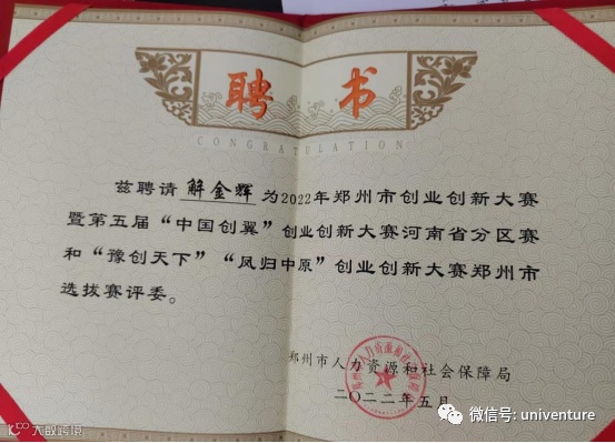 合众海创负责人担任2022年郑州市创业创新大赛暨第五届“中国创翼”创业创新大赛河南省分赛区和“豫创天下”“凤归中原”创业创新大赛郑州选拨赛专家评审组组长并组织企业积极参与。