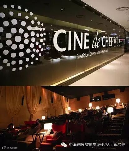 Ciné de Chef只有30个座位,拥有两块高科技幕布和11.1声道环绕立体声。影厅里的豪华座椅每把造价约7500美元。观众们还能在这里享受到由前星级酒店主厨精心烹制的法国意大利美食。
