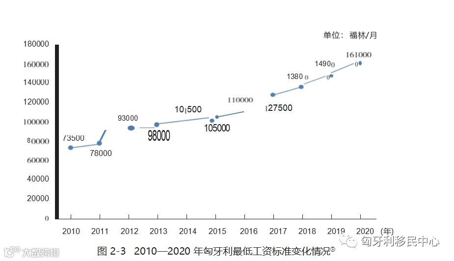 匈牙利劳动力素质较高,根据匈牙利中央数据统计局(HCSO)2017 年数据显示, 匈牙利接受高等教育的学生主要分布在工商管理类(17%) ,工程、制造和建筑类(15%) ,社会科学与法律类(14%)专业。匈牙利最低工资标准依照经济发展形势稳定上升, 2020年最低工资 161000福林/ 月。从地域分布来看,布达佩斯和西部地区工资水平高于落后的东部地区。从行业划分来看,2019 年金融及保险行业月平均工资最高,为665380 福林, 较 2018 年增长 57146 福林, 增长幅度为 9.4%;餐饮和住宿行业月平均工资最低, 为 239585 福林, 较 2018 年增长 27601福林,增长幅度为 13.02%。