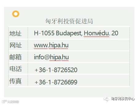 匈牙利投资促进主管部门是匈牙利外交 与对外经济部及其所属的匈牙利投资促进局 (HIPA)。该部门所管理的数据库记录了匈 牙利最全面的投资地点信息。同时,HIPA 还 为投资者提供支持项目信息、协助落实项目 优惠政策,并为潜在的金融和战略投资者与对应的政府投资项目搭建沟通平台。