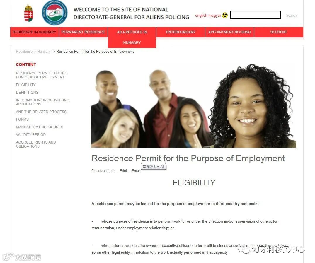 匈牙利移民局官网上,关于以就业为目的的居留许可,有详细介绍: