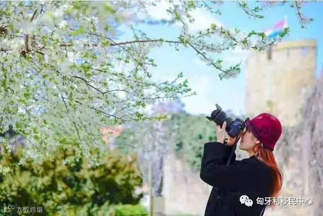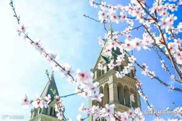 纯洁的樱花衬托着神圣的教堂,刻画出属于佩奇最特别的浪漫景色。