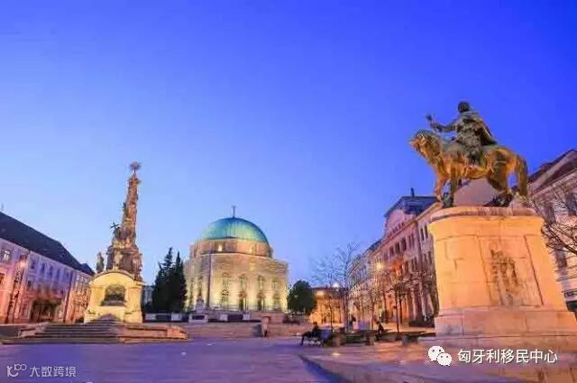 夜幕初上的佩奇,天空呈现出一尘不染的幽幽蓝色,给古老的广场渲染上了静谧的光彩。