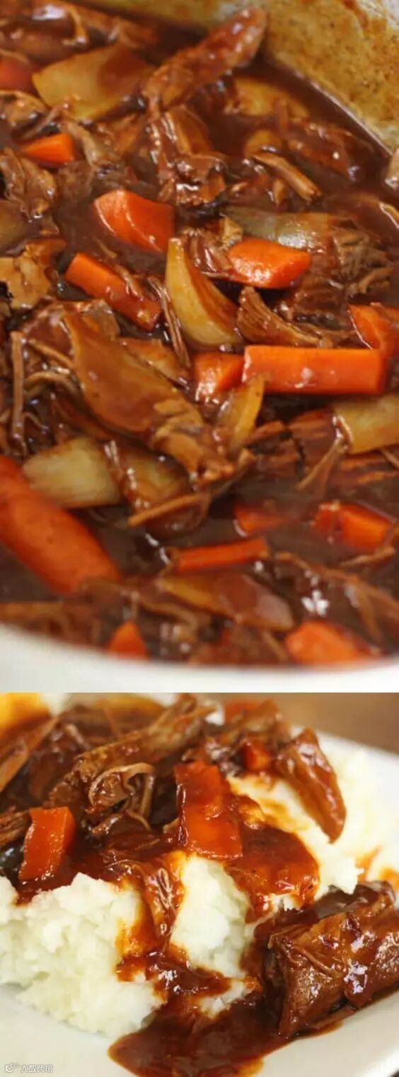 去皮的牛后肘子或牛臀肉,加入洋葱、土豆胡萝卜等,用大铁锅将汤熬制成浓汁,再加入红辣椒粉,口感浓稠鲜香!