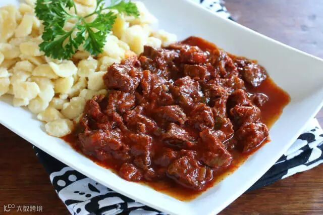 逛累了?来尝尝这碗色香味俱全的匈牙利炖牛肉吧,深红鲜艳的酱汁光用看的就开始分泌唾液,甜椒粉的香气像张绵密的网覆盖厚厚的汤锅,细抿一口炖得软绵细致的牛肉,不费劲就能轻松咬断,紧紧裹着肉汁的面疙瘩,一口接一口包准你以惊人速度瞬间吃光。不用我多说,快把这道匈牙利炖牛肉加进你的必选清单里吧!