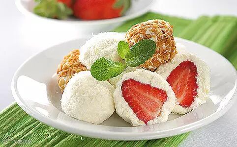 绵软的芝士沾上细碎的坚果粒,入口即化,配上内里酸甜的草莓,浓郁的芝士香令人无法抗拒。