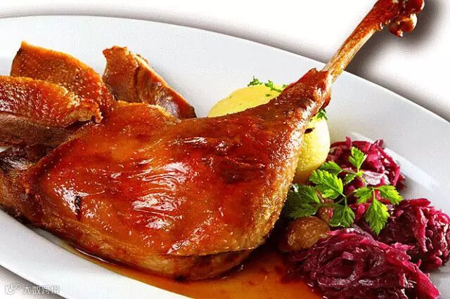 必点!匈牙利秘制烤鹅腿!鹅腿色泽金黄,外皮酥脆里肉鲜嫩,肥而不油腻。启齿连皮一起咬落去,真是鹅香满口啊!搭配上红菜头与奶油土豆泥,口感顺滑,饱满感十足!是在匈牙利必点的一道特色主菜!