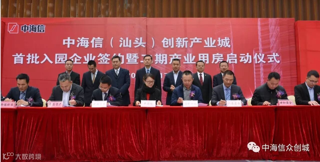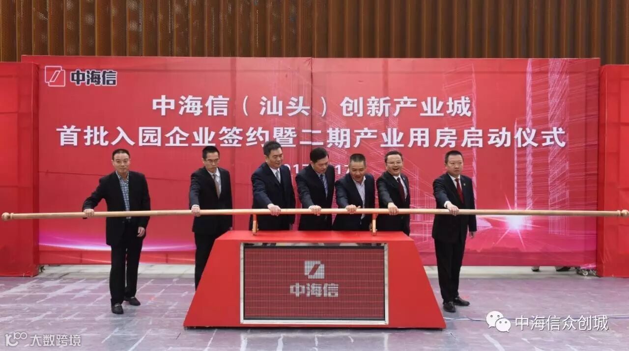 2017年1月17日,中海信(汕头)创新产业城首批入园企业签约暨二期产业用房启动仪式举行,汕头市市长刘小涛、副市长林广华、汕头市濠江区区长秦波及中海信投资控股有限公司董事长邱新成、总裁刘刚出席活动。