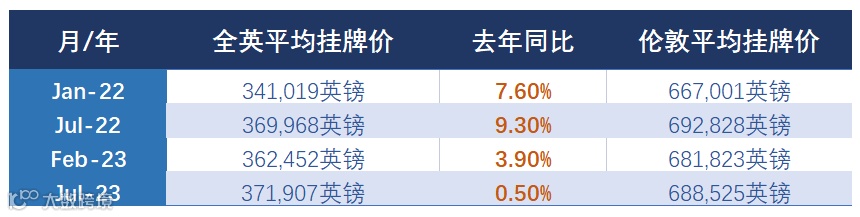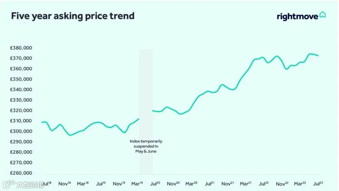根据Rightmove的近5年的房价趋势图,以及2021年至今数据环比: