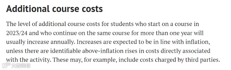 其实英国大学每年的学费均有一定程度的上涨情况,很多大学都会在官网费用一栏下,提示学费逐年上涨的消息,如牛津大学则直接点明了由于通货膨胀,而产生的课程额外费用。