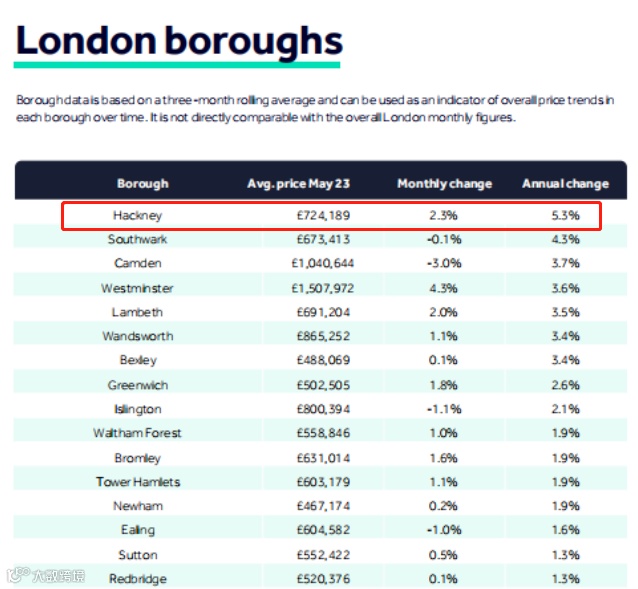 2022年5月——2023年5月期间,房价涨幅最为显著上涨5.3%,列为伦敦房价涨幅榜第一。