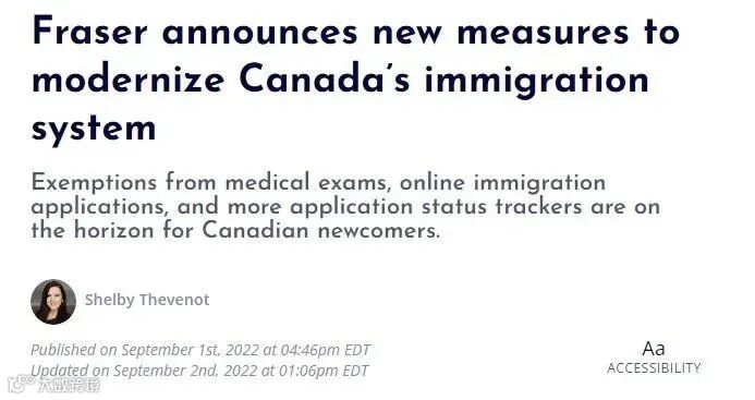当地时间9月1日,加拿大移民部长肖恩·弗雷泽宣布在加拿大移民系统中引入新的在线服务,旨在改善移民申请人的体验并减少审理积压。