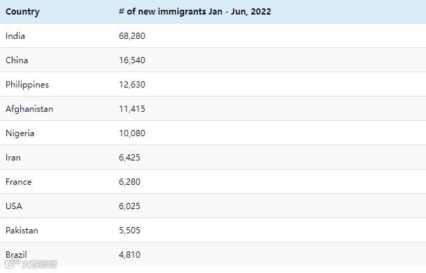 数据显示,印度仍然是加拿大最大的新移民来源国,今年上半年,已有68,280名印度人获得加拿大永久居留权,占新移民总数的29%。