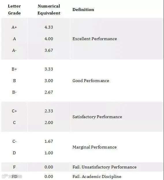 另外总平均绩点(Overall GPA)是将全部所修学科按上述方法计算出来的点数,最后两年平均绩点(GPA for the last two years)即将最后两年所修各科算出来的点数。