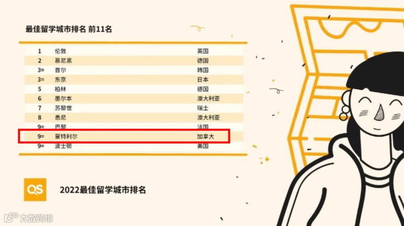 除此外,与加拿大其他城市相比,蒙特利尔的物价水平以及学生评价都是最优秀的。