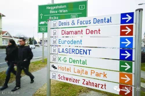 看不懂匈牙利语?我教你~~Dent就是牙医的意思~记不住?没关系~~牌子左边都是牙齿,一列数下来都是牙齿!哎呀!中间第二个不是,那是啥,那是酒店!那么多跨国人士来看牙,得建个酒店给人家住啊!是不是?