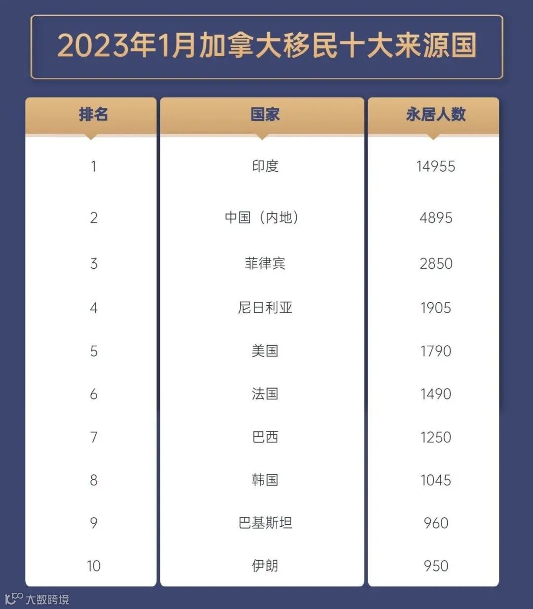 1. 印度,继续成为加拿大第一移民来源国,共有接近1.5万人,近30%;