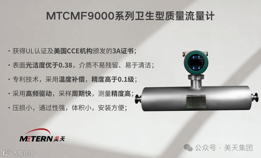 美天测控是国内外工业过程测量仪表知名的高新技术企业,专业从事仪器仪表、自动化控制系统、新能源等业务的研发、生产及销售。以“超高精准计量”为目标,提供最佳测量仪器解决方案。其中MTCMF9000系列卫生型质量流量计为本次展会的核心产品。