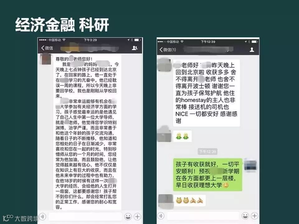 济金融科研B同学家长说:昨天晚上回到北京,收获多多,也舍不得离开波士顿。谢谢您一直为孩子保驾护航,感谢感谢