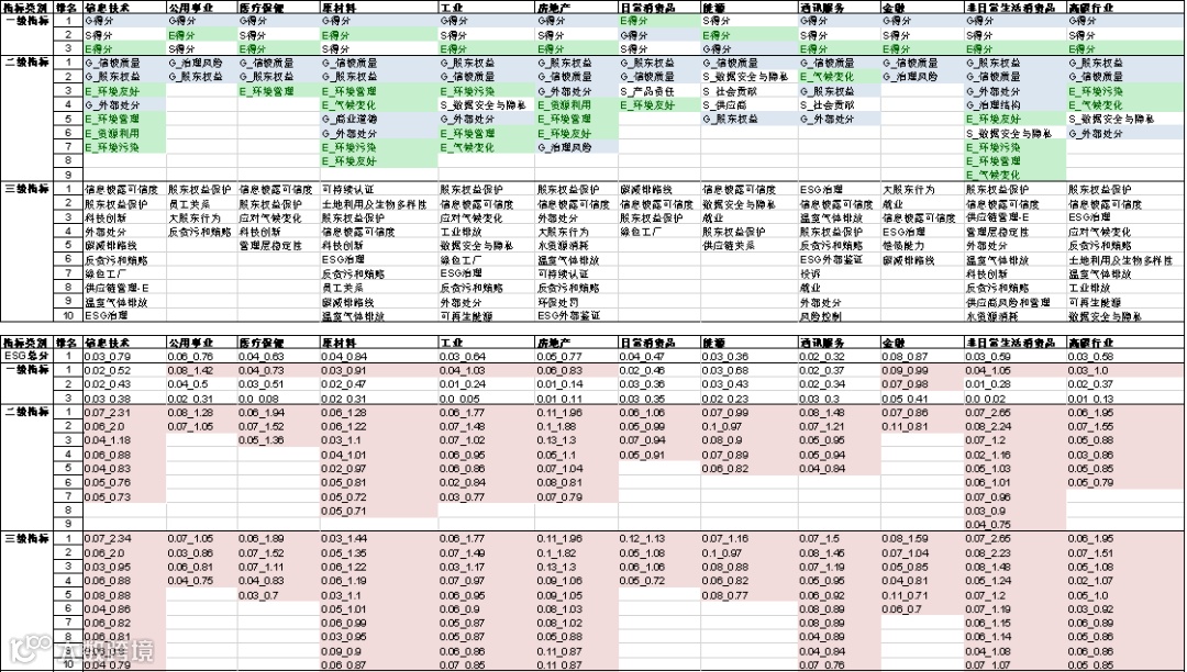 1)在二级指标因子中,信息技术、原材料、工业、房地产和可选消费这5个行业中至少有7个二级因子有效性较强,且各行业均有多个有效的E维度因子