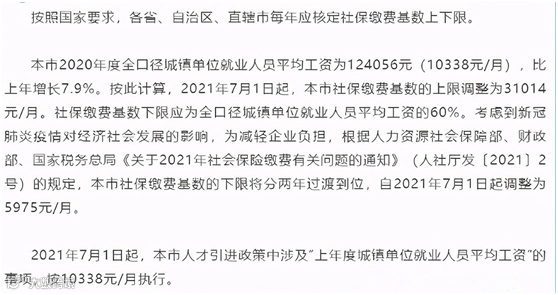 从2021年7月1日起,以10338元/月作为计算社保缴费基数的参考水平,不同倍数社保基数数据如下: