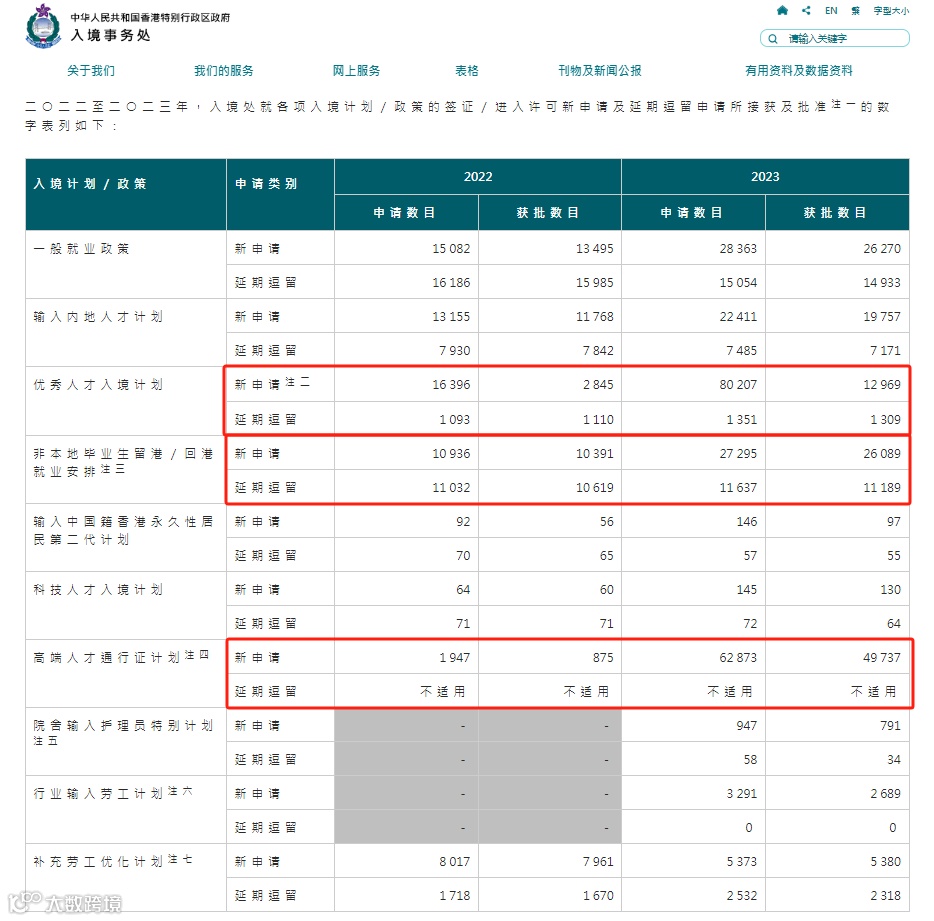 近日,香港入境处官网悄悄更新了2023年各项人才计划的申请和获批数据: