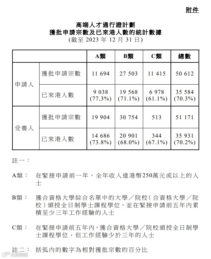 最新数据,截至2024年2月底的入境处数字,当局至今批出58,895 宗高才通申请,其中43,944人已来港(近75%);