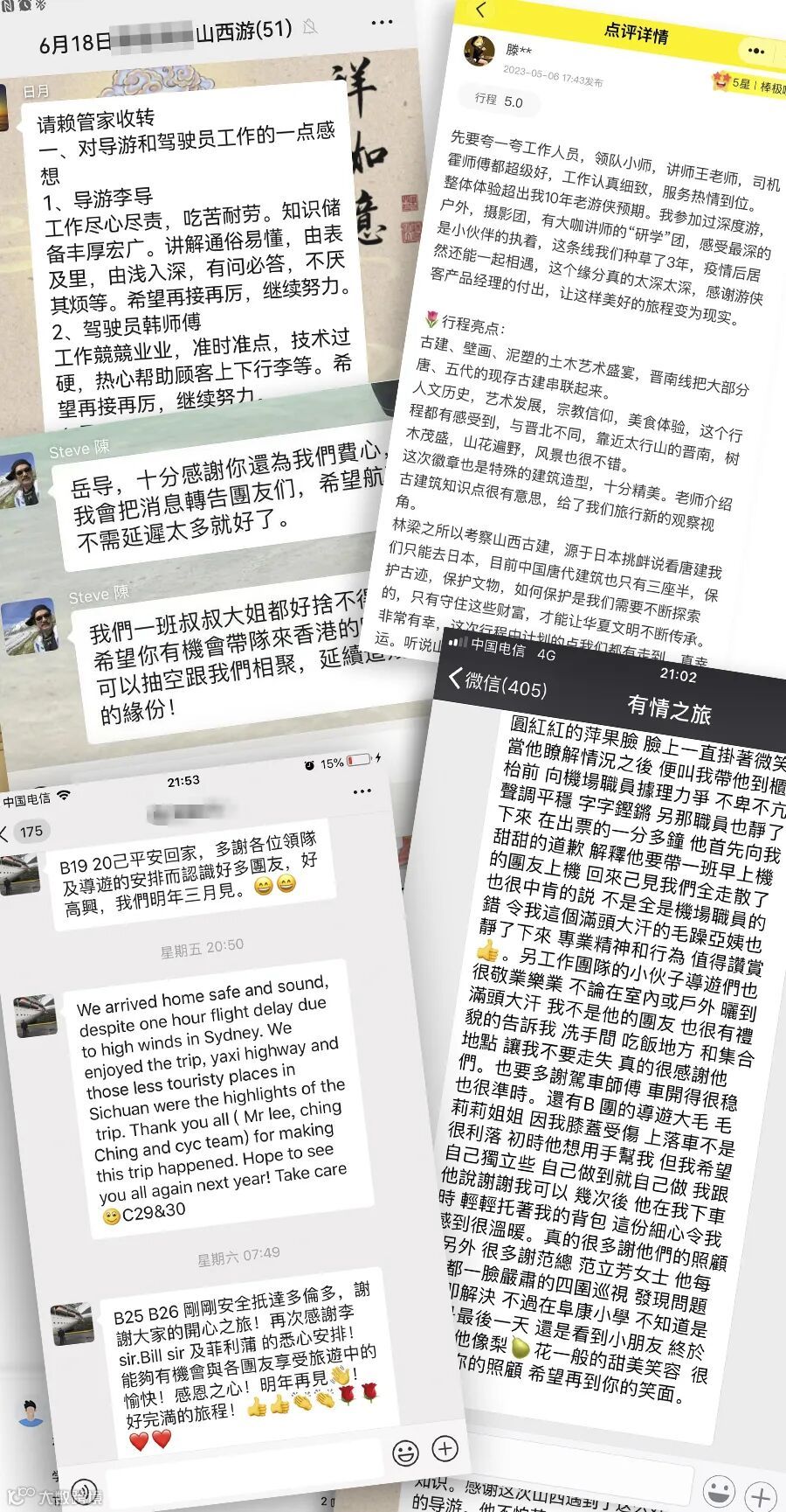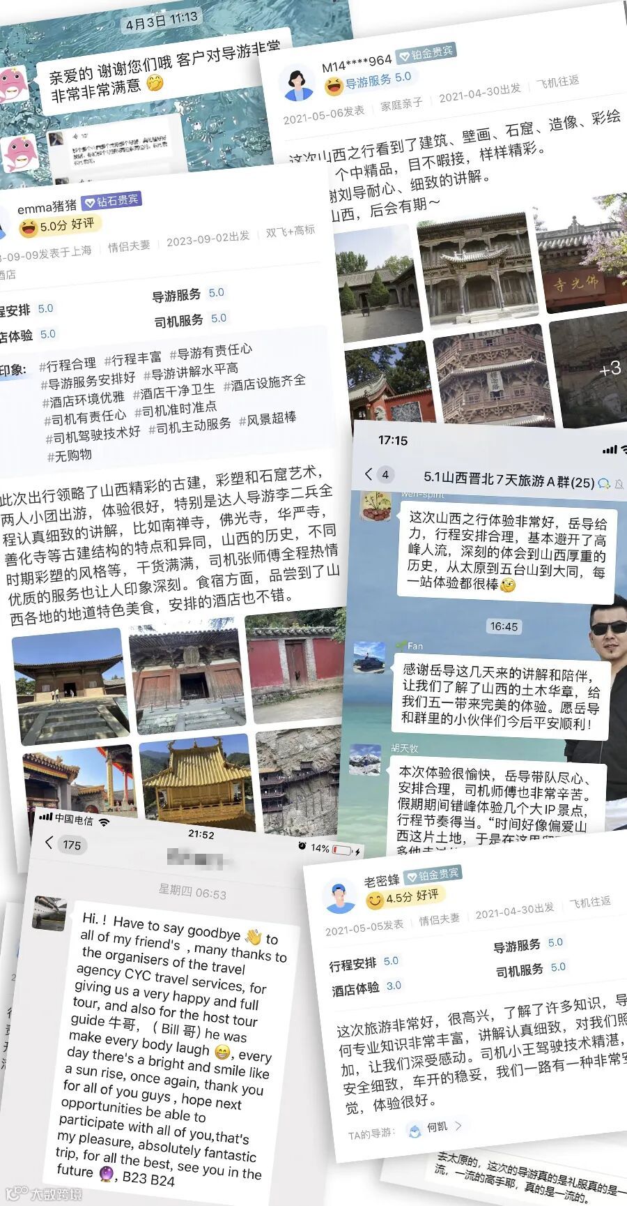 甲方多评价『品质稳定、专业靠谱』。我们是山西首家以『定制旅行』命名的公司。多年来接待过多位世界500强、国内百强企业的高管;省部级领导;香港、台湾、澳洲的明星、知名人士、太平绅士、国内文艺界名人、文化爱好者访问中国和山西。