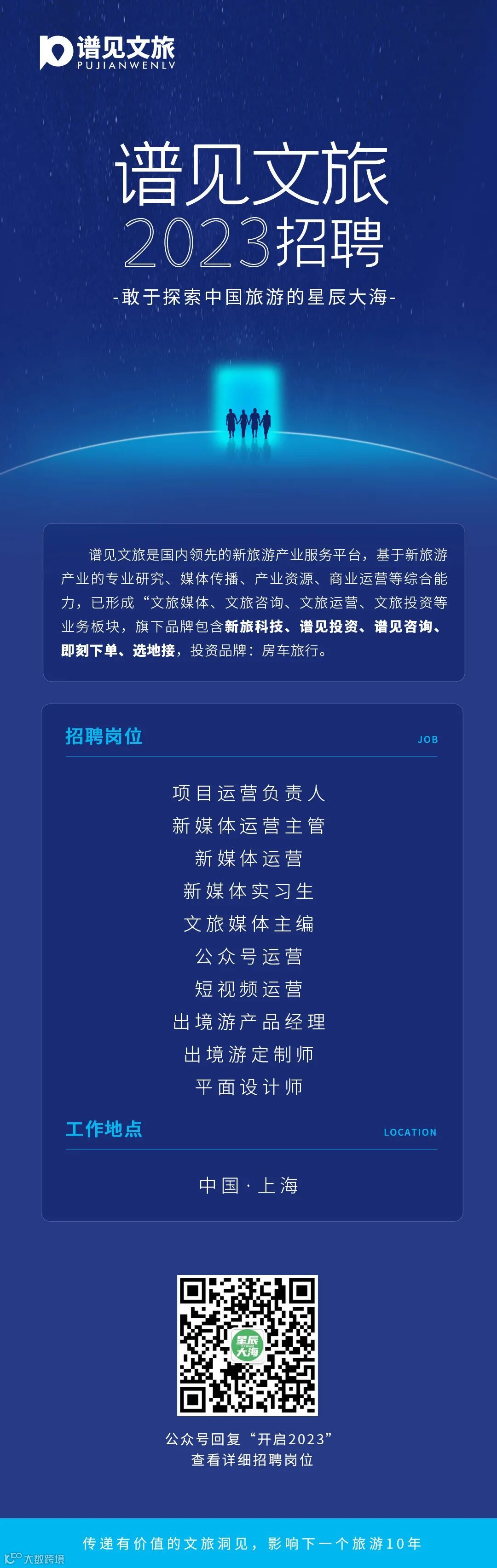 文旅行业的变革才刚刚开始,影响行业进化的积弊、顽疾和桎梏终将被市场和商业的力量缓慢而坚定的消释,更多的创意、产品和玩法等待着被发掘和创造,更多的商业机会等待着被发明和实现,更多“向善、利他、创变、激情、专业”的新势力正在重新集结向文旅梦想出发。