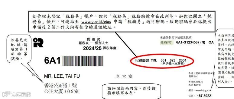 税务证明: 香港税务局发出的报税表及缴税记录。