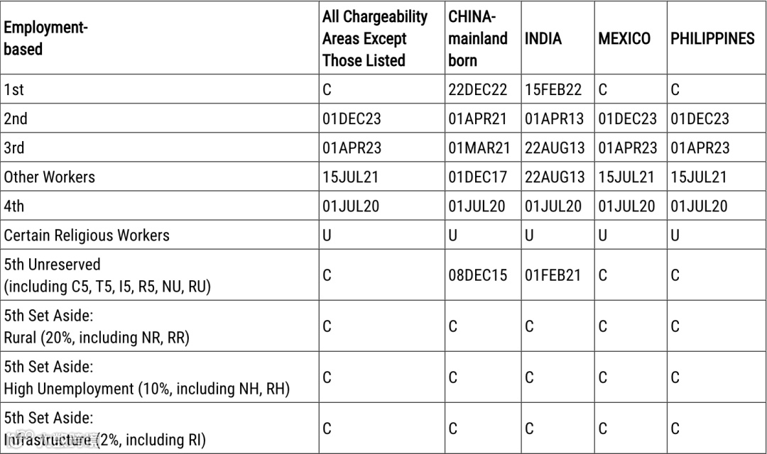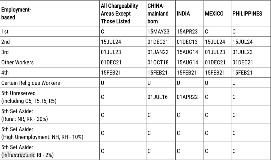 EB-5预留类别(乡村,高失业率地区以及基建项目):无排期。
