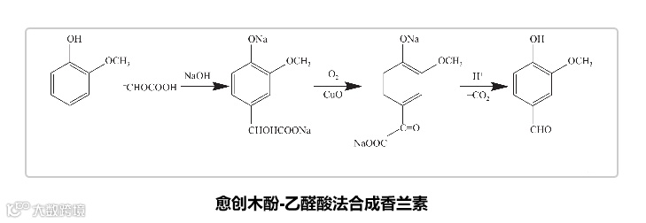 香兰素,被誉为4-羟基-3-甲氧基苯甲醛,亦被人们熟知为甲基原儿茶醛或香草醛,是“食品香料之王”,是当前全球使用最为广泛的食品赋香剂之一。目前,获取香兰素的途径主要包括天然提取、化学合成以及生物发酵三种方法。其中,化学合成法因其简便高效的特点而成为最常用的方法,一般都是以工业纸浆废液和石油化学品作为原材料,合成方法中以木质素法和愈创木酚—乙醛酸法最为常用,愈创木酚法因其原料价格低廉且易得而逐渐成为主流,它以愈创木酚和乙醛酸为起始原料,通过缩合、氧化以及脱羧等三个关键步骤,高效合成出香兰素。