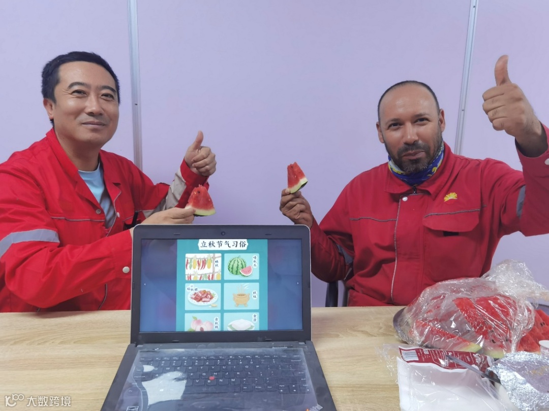 立秋前夕,阿尔及利亚项目举办“‘咬秋’迎立秋”活动,让外籍员工体验中国传统节气文化,同时也增进了他们对于中国文化的理解,进一步提升了团队凝聚力。中方员工郭辉讲解立秋由来与“咬秋”(吃瓜)习俗,并邀请大家共品西瓜,寓示“咬走暑气迎秋爽”。中外员工围坐一堂,笑声不断。阿尔及利亚籍员工Ramdane(兰姆丹)说道:“中国二十四节气对应不同的民俗,非常有意思,我开始期待下一个节气了!”