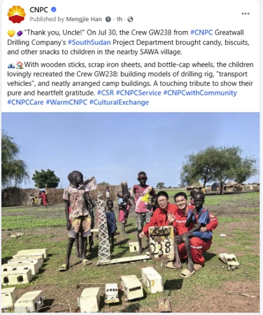 中国石油以“CNPC with Community(中国石油与社区)”为话题,展示企业高质量履行社会责任的积极贡献,通过Facebook、X、Ins账号策划发布《长城钻探 孩子眼中的中国钻井队》等四期帖文,讲述了中国石油在能源知识普及、国际人文交流、乡村振兴和青少年科教等方面的多元实践,总浏览量175万。