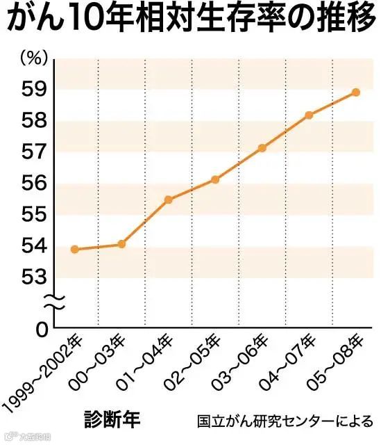 养老最看重的就是医疗,日本医疗水平是世界数一数二的,连癌症的10年存活率都能年年创新高,2021年已经到了58.9%。