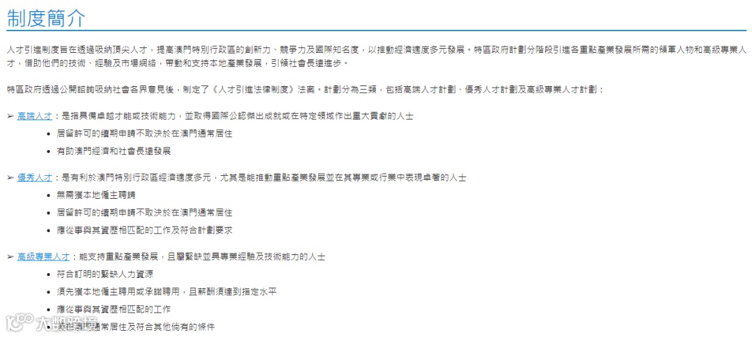 其中最受关注的就是澳门优秀人才计划,主要招纳能推动重点产业发展并在其专业或行业内表现卓著的人士,无需先获得本地雇主的聘用,居留许可的续期也不取决于在澳门通常居住。