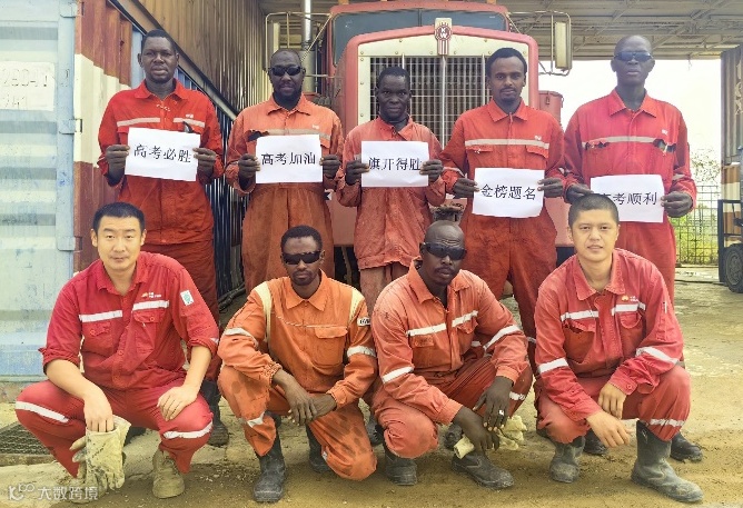 在互动环节,当地雇员Oumar Mahamat Tahir分享道:“虽然我们国家的教育体系与中国不同,但为了梦想全力以赴的精神是共通的。希望中国的学子们都能取得理想的成绩。”中方员工也分享了自己的高考经历,现场氛围热烈而温馨。中外员工一同合影留念,他们手中挥舞着写有祝福的卡片,脸上洋溢着温暖的笑容,共同为中国高考学子加油鼓劲,期待他们在考场上书写属于自己的辉煌篇章。