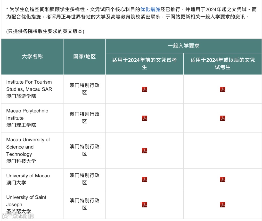 3、香港中学文凭亦获澳门特别行政区数间高等院校认可。