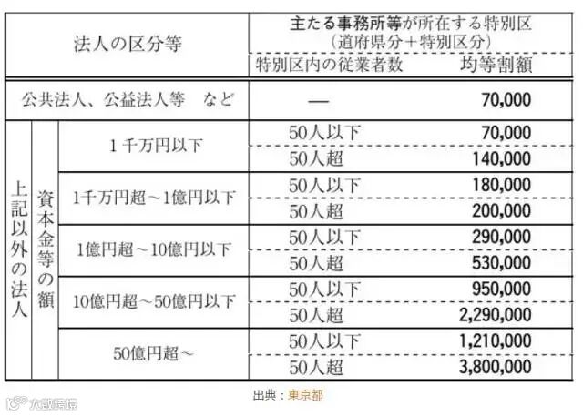 每个地方的政策会稍微有些区别,以东京为例,如果公司注册资本金1千万以内,员工人数少于50,每年的地方法人税就是7万日元。