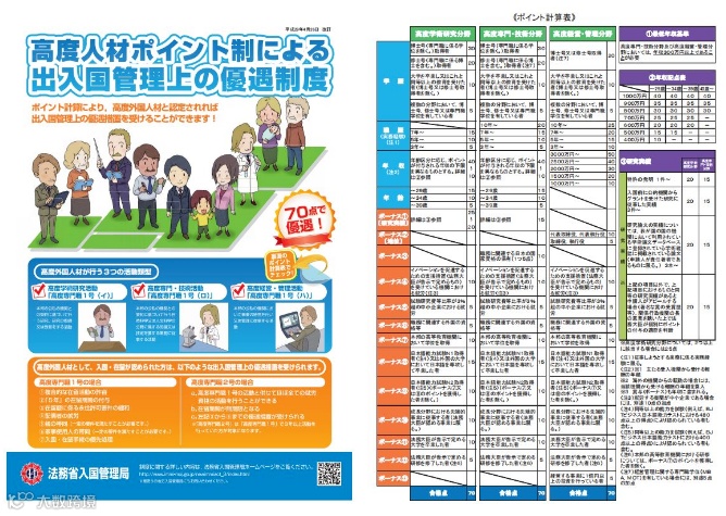 日本政府为了促进国内经济发展,吸引外国高级人才,在2012年开始导入【高度专门职】签证,采用积分制的方式。