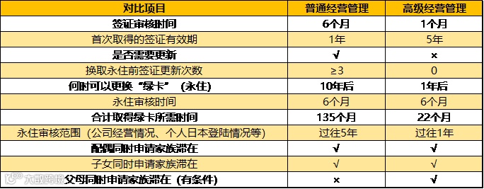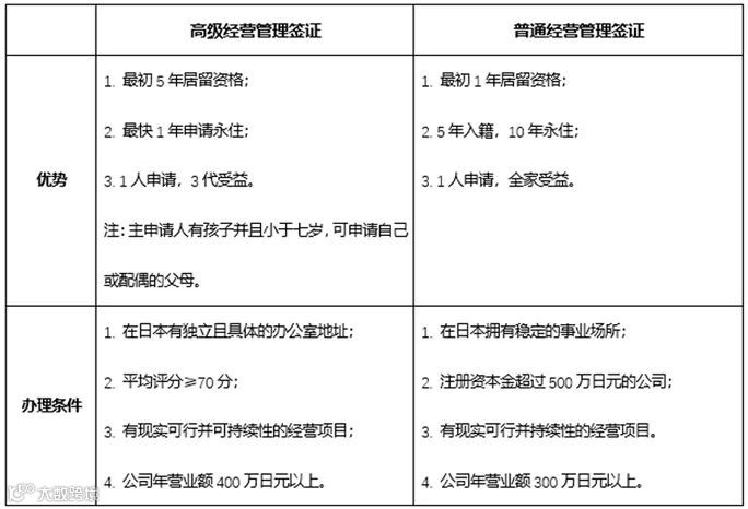 日本普通经营管理签证和高级经营管理签证,在办理条件有所不同,转永住的周期、优势也有较大差异。