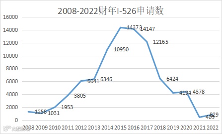 随着排期的出现以及不断拉长的等待时间,还有2019年末的涨价(投资额提升至90万/180万美金),2021年6月区域中心政策的停摆,EB-5申请量也逐步减少,直至2021年降至冰点。