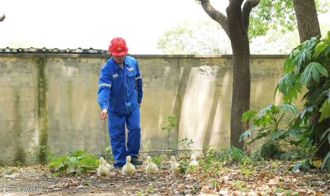 在长城钻探昆山公司水处理中心附近波光粼粼的生态河道旁,一群毛茸茸的“新员工”正在接受岗前培训,这是生物防治助力绿色生态而新孵化的一批“四季鹅”。